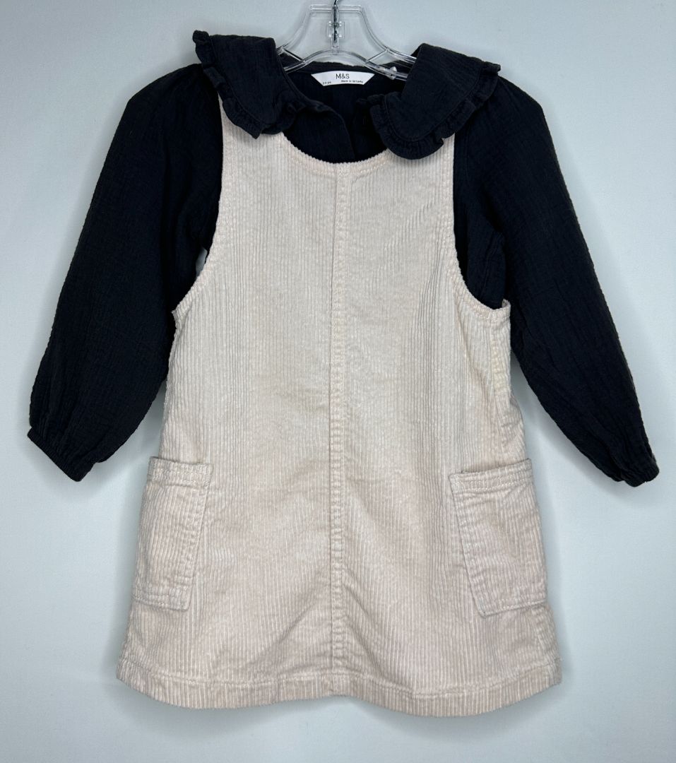 M&S Cord Dress & Blouse 3-4 Black Blouse Crm Dress