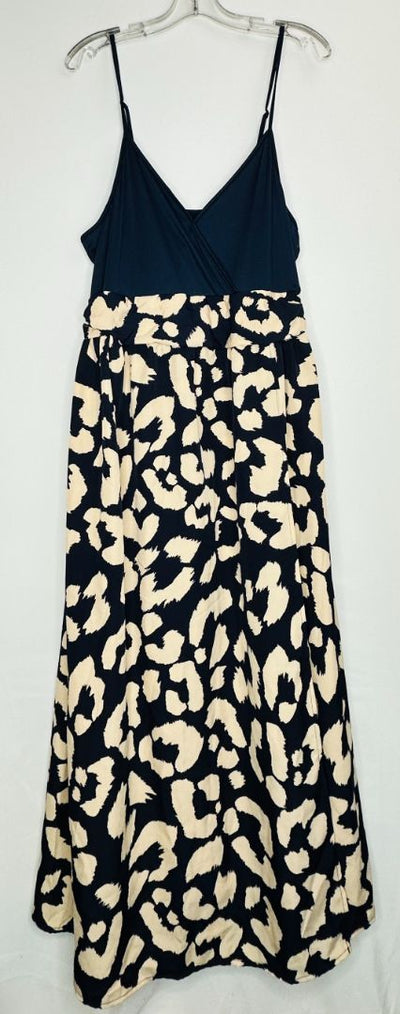 Print Long Dress M Navy Brown